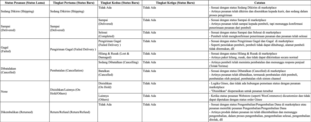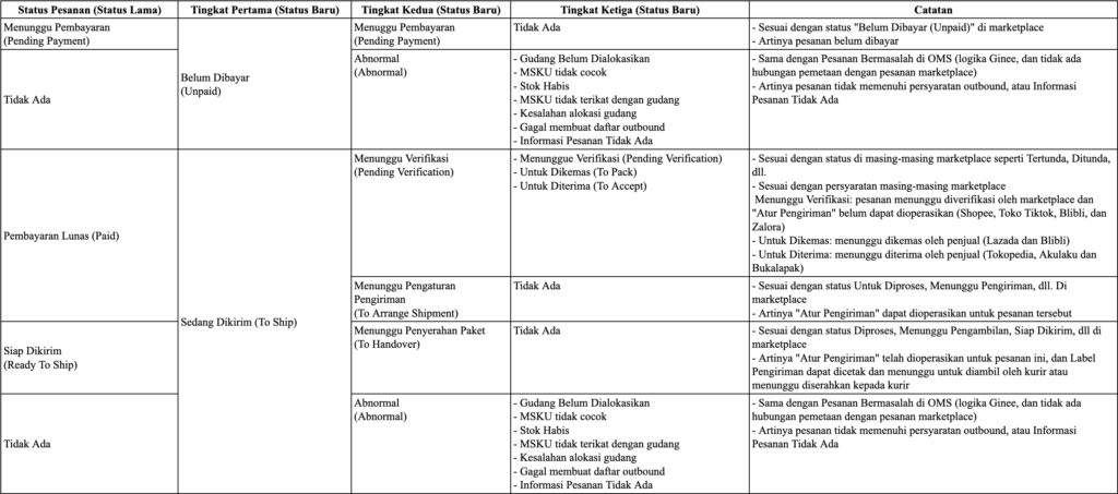 1. Status Pesanan: sesuai dengan Status Pesanan pada daftar pesanan