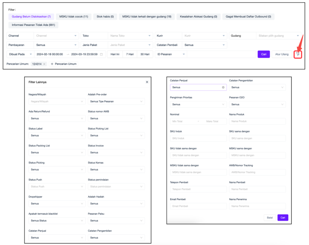 A. Semua pesanan (Semua pesanan yang telah dialokasikan ke semua gudang, termasuk gudang OMS, gudang WMS, dan gudang pihak ketiga)