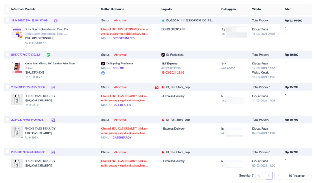 5. Informasi Produk: sama seperti detail pesanan OMS
