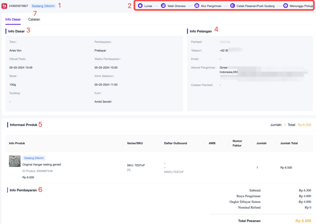 3. Informasi Dasar: sama seperti detail pesanan OMS