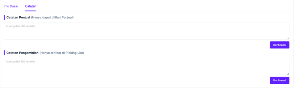 7. Catatan: Catatan Penjual, Catatan Pengambilan (sama seperti detail pesanan OMS)